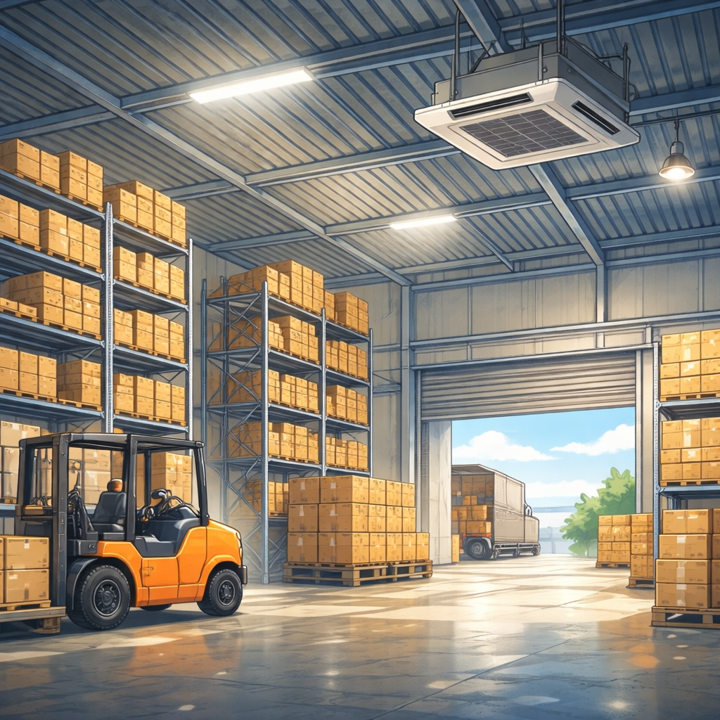 こうした「当たり前」を、毎日静かに支えているのが、倉庫の空調です。